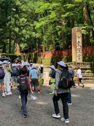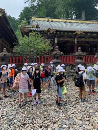 雷鳴もどこかへ消え、快晴です。集合写真を撮ってから、行動班ごとに見学します。