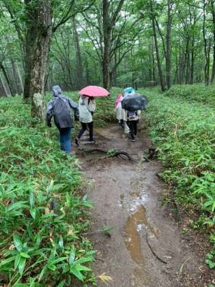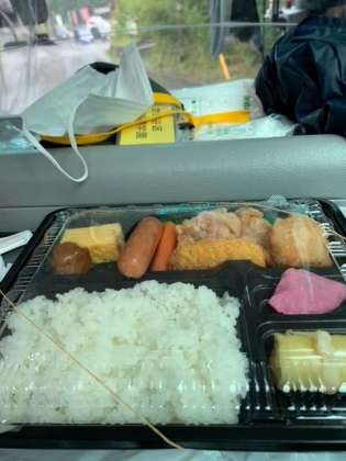 予定していた「しゃくなげ橋」で食べることができないので、バスの中でお弁当を食べました。