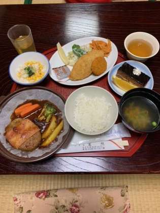 ハイキングで消費したカロリーをたくさん食べて回復させます。