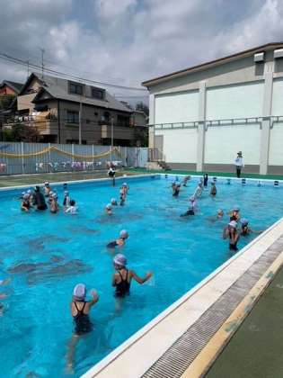 6月から始まった水泳の授業も、今日が最終日です。6年生がプール開きをし、締めは1年生。