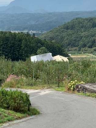 周りは、りんご畑。真っ赤に熟していて、今収穫の真っ最中です。