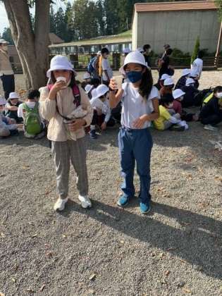 歩いて汗をかいた体に、りんごジュースは最高です。