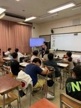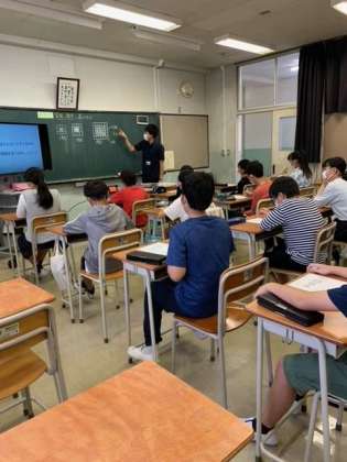 数学の授業のめあては、算数と数学の違いを知ること、英語は、英語で自己紹介すること、理科は、人の体のはたらきを考えること。