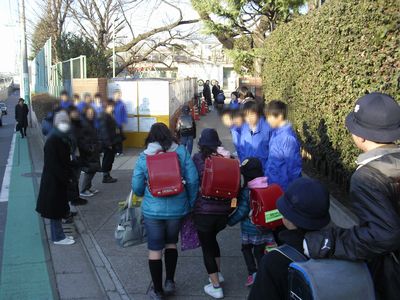 1月10日〜16日は、あいさつ週間です。PTAの方、地域の方、さらに今日は、梅丘中学校の皆さんも来てくれました。梅丘中学校でも頑張っている代田小の卒業生の姿を見て、とても頼もしく感じました。みんなも先輩に負けないよう、大きな声であいさつを交わしましょう。