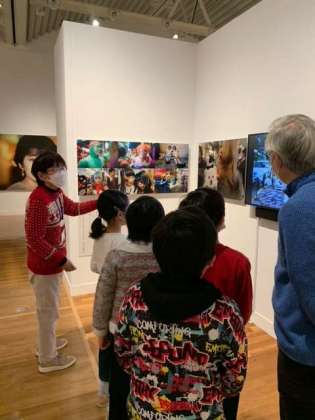 4.5人のグループに分かれ、藤原新也さんの写真展を見てまわります。グループには、1名以上の鑑賞リーダーがつき、解説したら、感想を聞いたりしながら、鑑賞していきます。「祈り」がテーマで、世界各地を回ってそこに生きる人たちを撮った写真が並びます。目を背けたくなるような写真もありますが、生きることへの強いメッセージが伝わってきます。