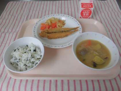 わかめごはん ししゃものフライ 呉汁 牛乳