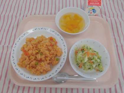 チキンライス ツナサラダ フルーツポンチ 牛乳