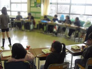 6年生を送る会と同日の給食の時間には、縦割り班ごとに集まって、お弁当給食会を実施しました。これまでお世話になった6年生をねぎらい、5年生がリーダーシップをとって、会を進行しました。給食後には、みんなでゲームをして遊びました。