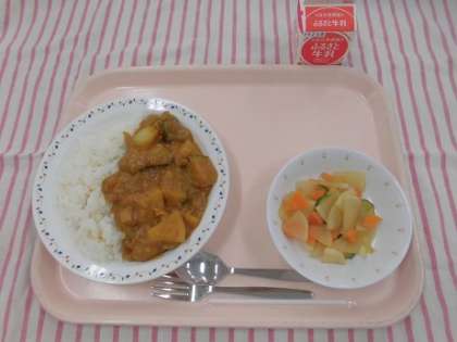 夏野菜のカレーライス シャキシャキ野菜 牛乳