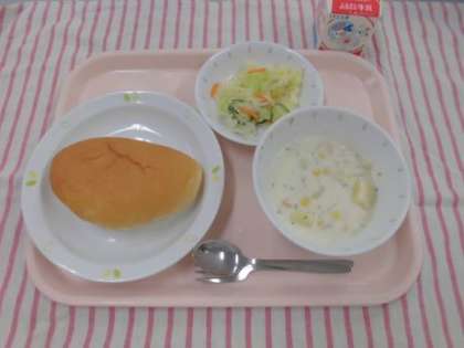 ドライカレーサンド クリームスープ フレンチサラダ 牛乳