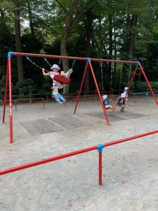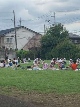 遊具でも遊び、芝生広場に戻りお弁当です。以前、植物園のあったところです。象のはな子さんも7年前に永眠し寂しくなりました。いくつか他の学校も遠足で来園していましたが,芝生の広いスペースを使わせてもらえました。