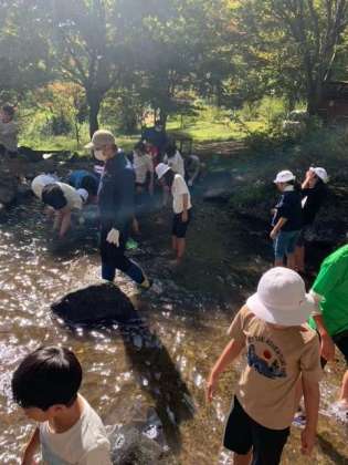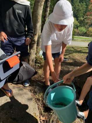 水の冷たさに驚きながら、夢中で魚を追いかけるうちに、冷たさを忘れてしまいました。
