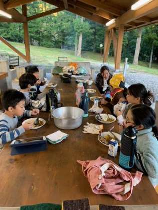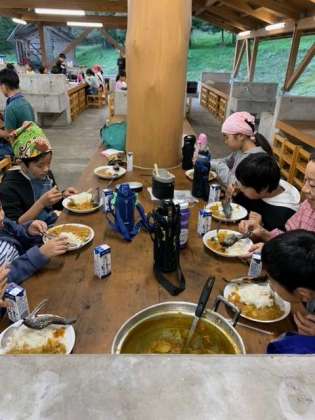 どの班もほぼ同じ時間にカレーライスが出来上がったのでみんなで「いただきます。」をしました。