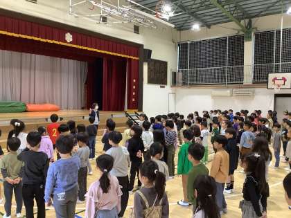 8日に仲間入りをした代田の末っ子たち(1年生)と2〜6年生の対面式を行いました。緊張した面持ちの1年生でしたが元気に「よろしくお願いします」を言うことができました。