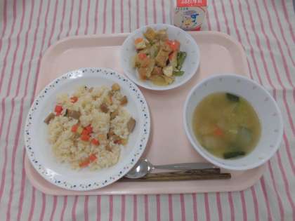 <世界の料理・中国> 中華おこわ 家常豆腐 中華スープ 牛乳