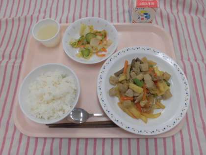 麦ごはん きんぴら煮 白菜のおかかかけ りんごゼリー 牛乳