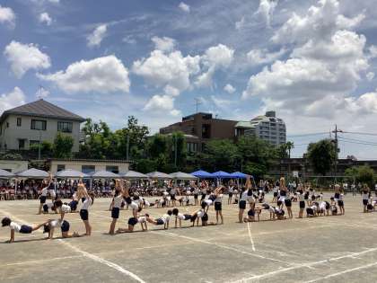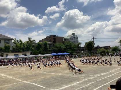 最高学年として学校を代表する責任感ある気持ちが表れた6年生の姿と、追いつけ追い越せの勢い溢れる5年生の姿がしっかりと組み合わさり、集団行動と組体操で構成された高学年の表現は見事の一言でした。