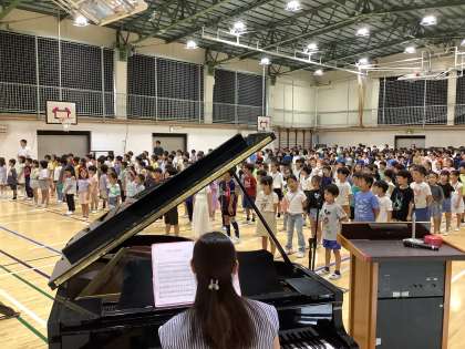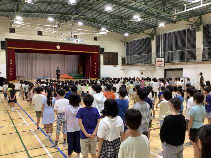 19日(金)1学期終業式を行いました。3年生の代表児童が、今学期がんばったことの発表をし、たくさんの拍手を全校児童からもらいました。校長先生からは「卵」のお話があり、困ったら大人に相談することや、安全に気をつけて毎日を過ごす様にとお話をいただきました。