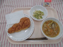 あげパン(ココア) バンバンジーサラダ 春雨スープ 牛乳