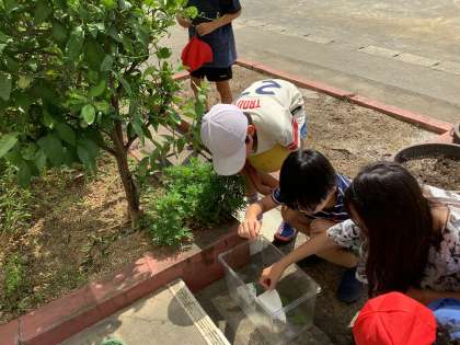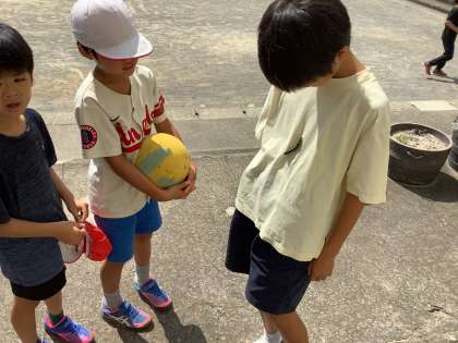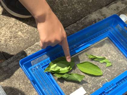 校長室前に最近子どもたちが集まってきます。アゲハの幼虫がいるからです。観察用に教室にも連れていっているので、餌になる葉っぱを取り替えています。今日は蛾の幼虫も見つけたようでした。