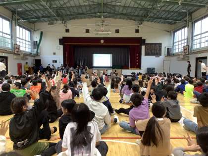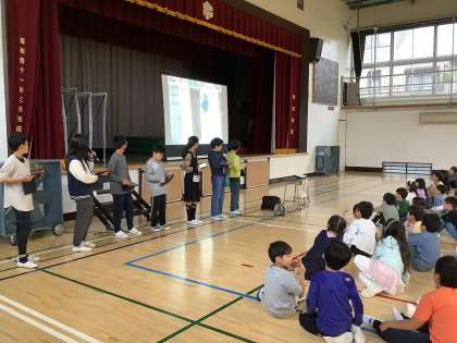 エコ委員会による集会を行いました。エコ委員会の活動紹介と環境に関連したクイズなどに、子どもたちは楽しく取り組むことができました。