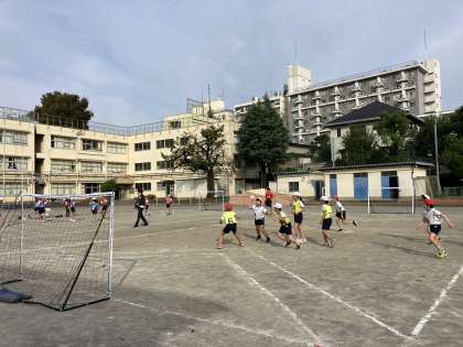 5年2組で東京教師道場の「ハンドボール」の授業が行われました。児童は素早いパス回しや、攻守の切り替え、プラスの声かけなど、これまで学習してきた成果を発揮し、協力し合いゲームを楽しんでいました。