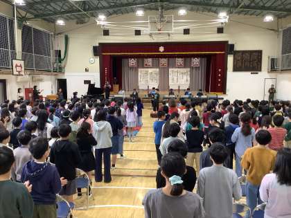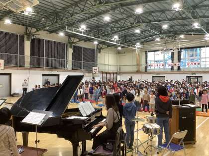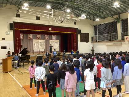 今週末に迫った「ビバ代田」に向けて、音楽集会が開かれました。音楽委員会の演奏に合わせて、全校合唱の練習をしました。児童鑑賞日に全員で歌った映像は、保護者鑑賞日のオープニングで上映いたします。