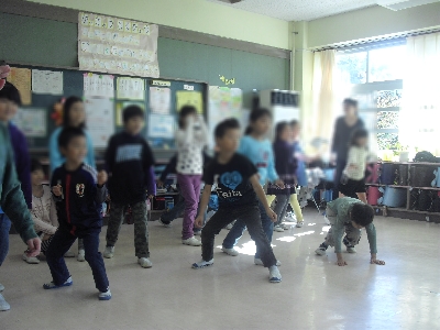 今日、パブリックシアターの方が来てくれました。パブリックシアターは、キャロットタワーにある劇場だそうです。私たちも役者さんになったつもりで、いろんな表現遊びをしました。