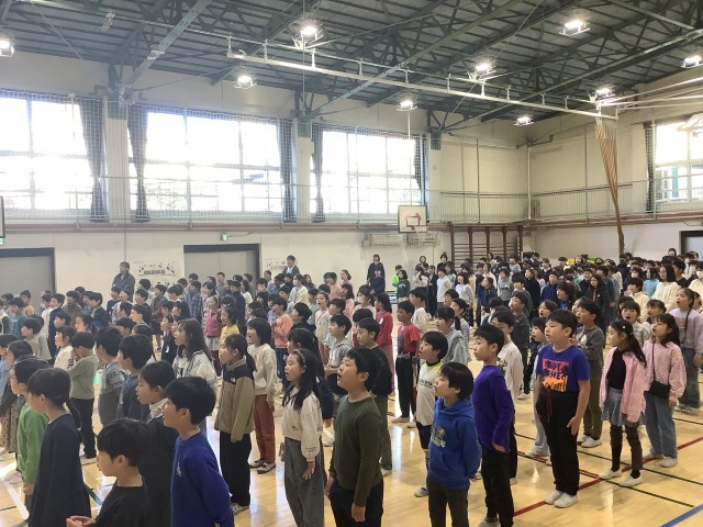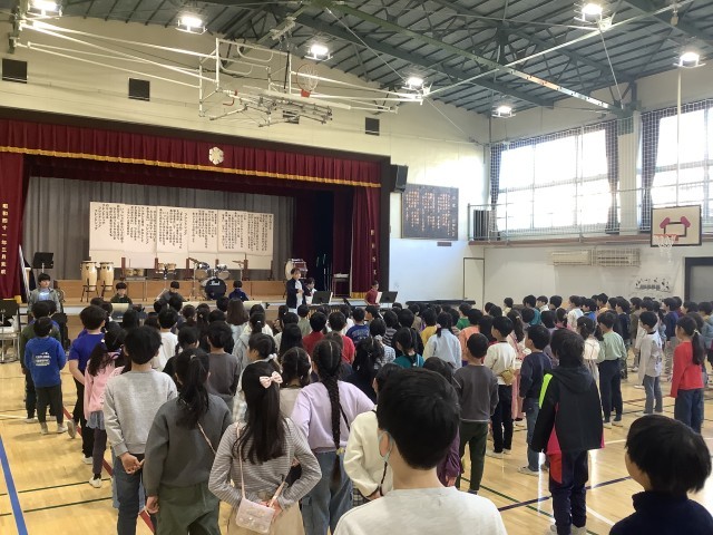 音楽委員の演奏に合わせて、全員で合唱をしました。明日の6年生を送る会での合唱曲です。卒業もカウントダウンです。