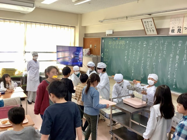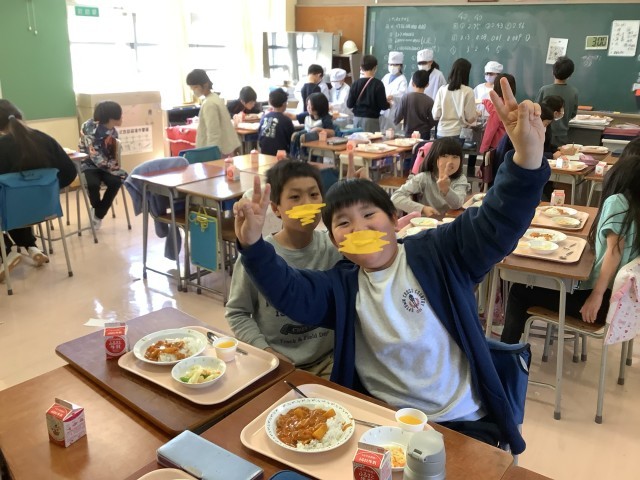 今日から給食が始まりました。手慣れた手つきで配膳をする子どもたち。久々にみんなで食べる給食は、格別です。