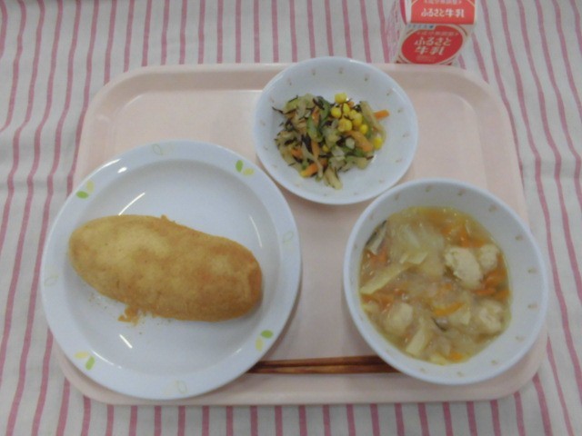 あげぱん(きなこ) 肉団子入り春雨スープ