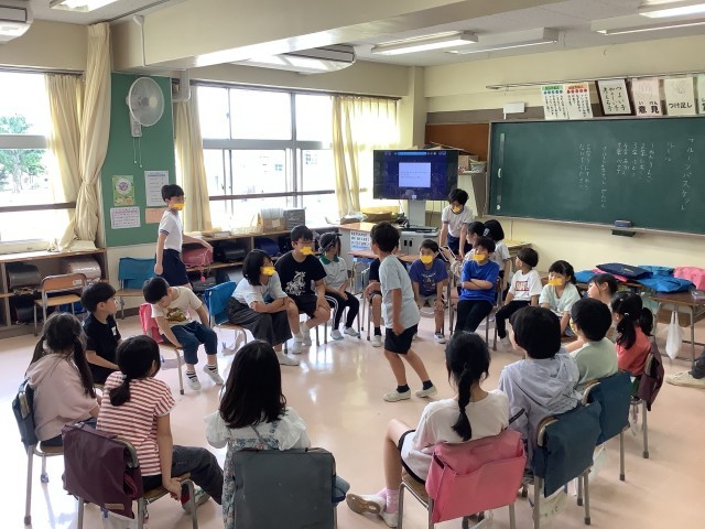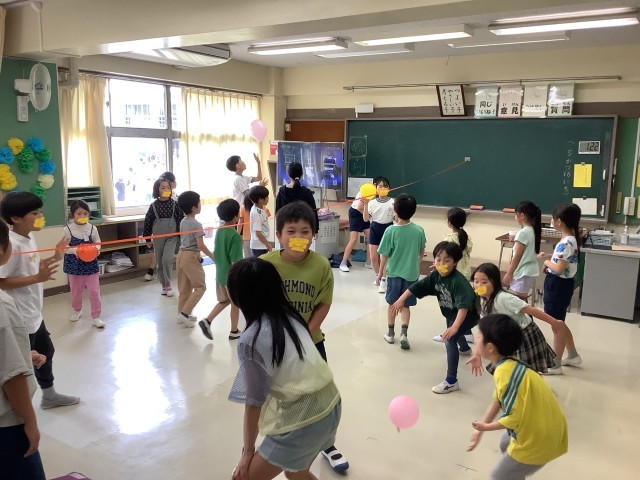 今日のお昼は縦割り班活動でした。フルーツバスケット、ドッジボール、風船バレーなど、6年生を中心に、みんなで楽しく活動しました。