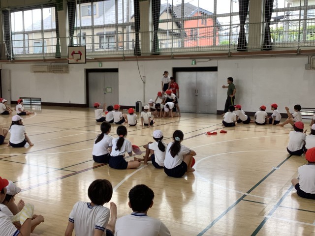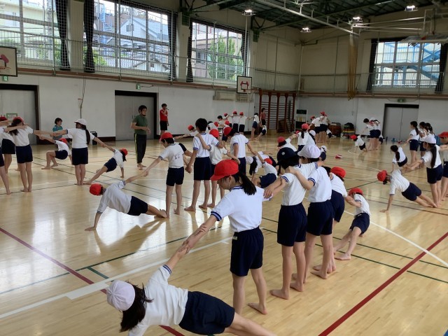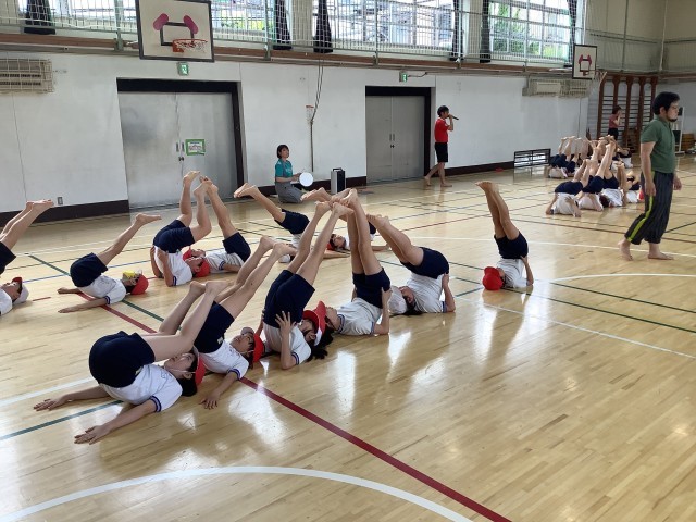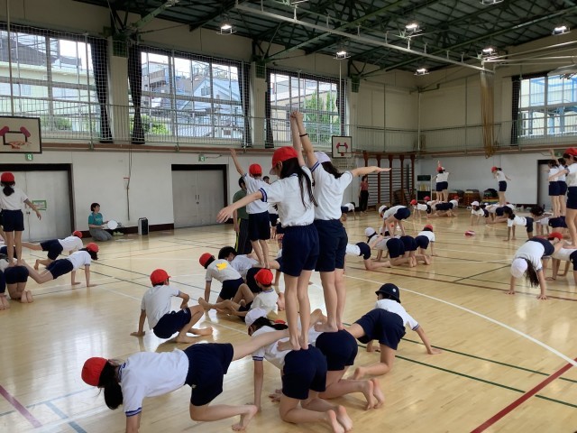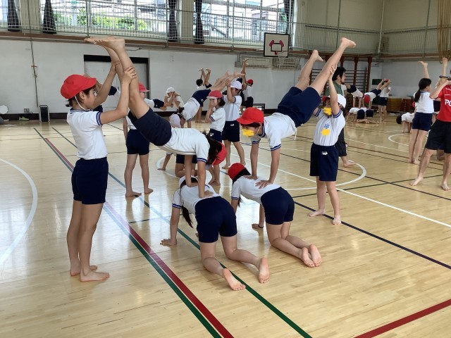 みんなで話しあい、役割を確かめ合いながら、6人技に挑戦しています。
