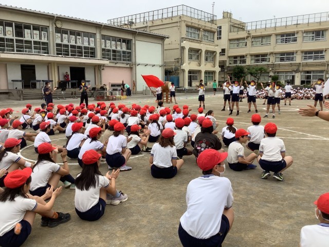 今日は応援団練習も行いました。応援団長の号令のもと、紅組、白組皆で、お互いの応援の仕方の練習をしました。繰り返し練習していくと、少しずつ声も手拍子のリズムも合ってきました。応援団の熱のこもった応援は見応え十分です。