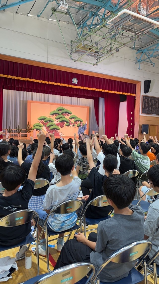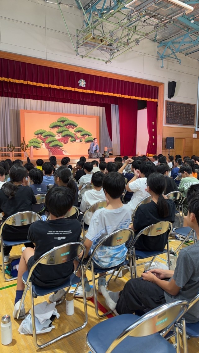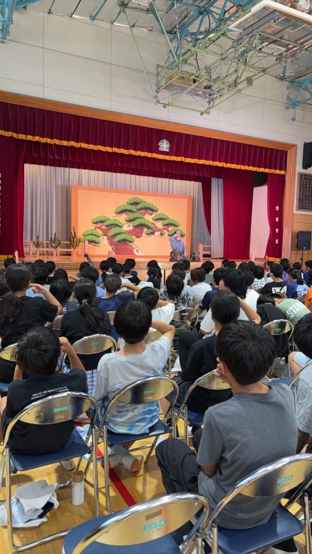 松原小学校まで、古典芸能鑑賞教室に行ってきました。狂言をみたり、ワークショップで体験をしたりして、日本の伝統文化への理解を深めました。児童代表の立派な挨拶からは、子どもの成長が感じられました。また、テレビの芸人さんからもヒントを得ていると声も。楽しんで学習を行いました。