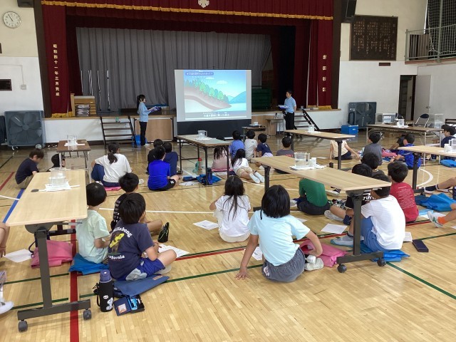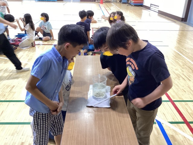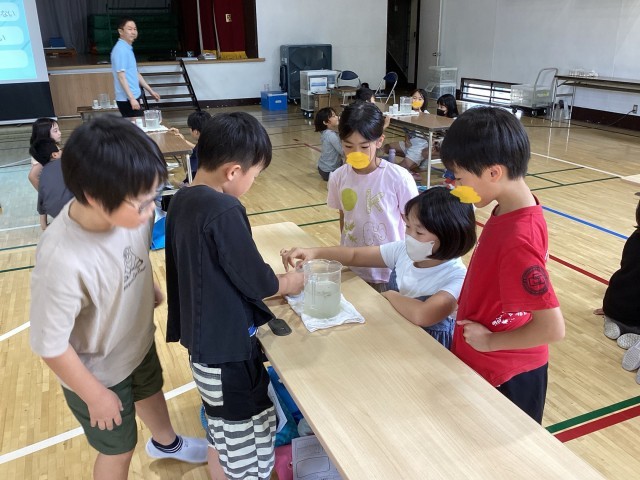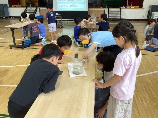 私たちの所に水が届くまでや、水をきれいにする方法の他、水の大切さなどについて教えていただきました。水の中の汚れを集めたり、濾過をする実験などを通して、理解を深めていました。
