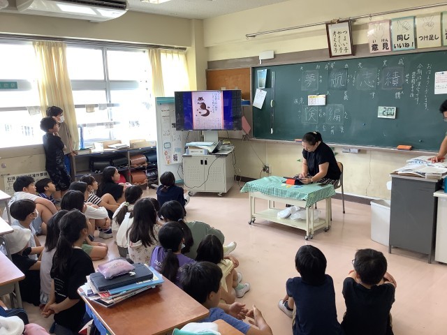 廊下まで臨場感溢れる読み聞かせの声が聞こえてきました。1年生の教室を覗くと、食い入るように読み聞かせを聞く児童の姿がありました。子ども達はワクワクしながらお話を聞いていたのだと思います。子ども達が喜び、楽しんでくれる読み聞かせとなるように、ご準備くださりありがとうございます。