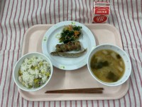 麦ごはん 魚のもみじ焼き刻み昆布の五目煮 呉汁牛乳