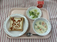 <ビバ代田 作品展・合唱発表会 コラボ給食>**食パンにイチゴジャムで絵を描きま...