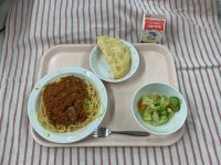 ミートソーススパゲティ ひとしお野菜ホットアップルパイ 牛乳