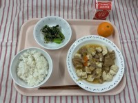 麦ごはん すき焼き煮野菜ののりあえ くだもの(みかん)牛乳