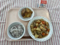 大根入りカレーライス ポテト入りフレンチサラダくだもの(りんご) 牛乳