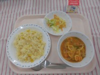 キャロットバターライス ハンガリアンシチューじゃがいものハニーサラダ 牛乳