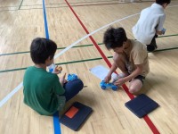 乾電池の数を変え、モーターカーを走らせて、データを集めています。「数が変わると全...