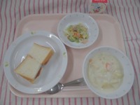 ジャムサンド(いちご)クリームシチューツナサラダ 牛乳