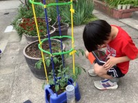 生活科で育てているトマトの観察をしました。毎日の水やりの成果で、お花も咲いていま...