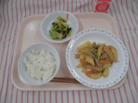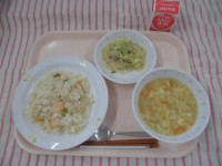 えび入りナシゴレン 春雨サラダ中華風コーンスープ 牛乳