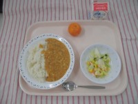 キーマカレーライス カラフルマリネくだもの(冷凍みかん) 牛乳