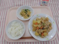 ランチルーム給食が始まっています。金曜日は5年2組でした。カレーライスを美味しそ...
