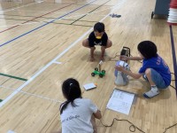風の力で車の進む距離を測っています。強さを変えると距離はどのように変わるのか、友...